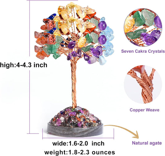 Healing Crystal Necklace, Tree Life Wire Wrapped Crescent Moon