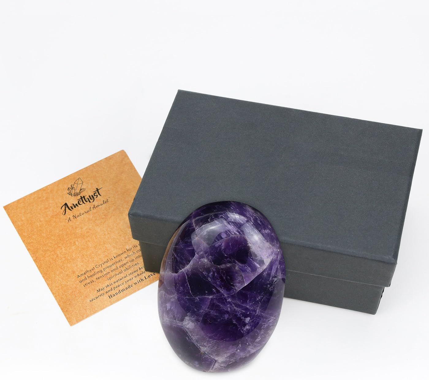 2.4" Large Amethyst Crystal Stone Polished Palm Stone