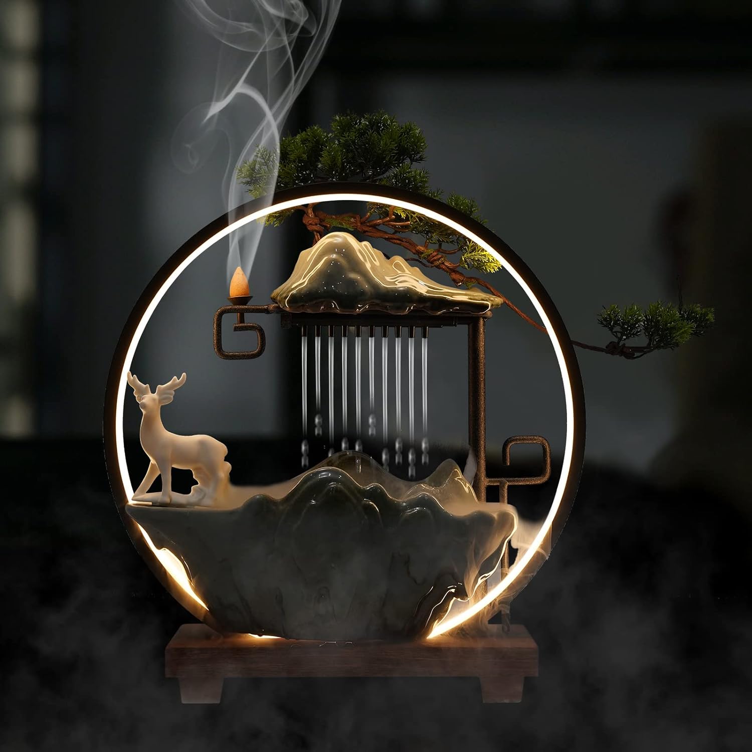 Backflow Incense Holder with Water Fountains and LED Light