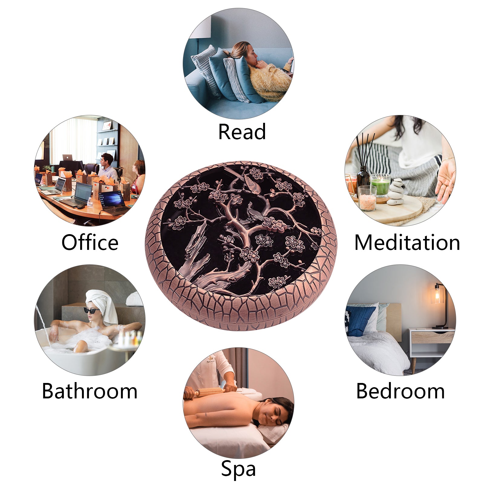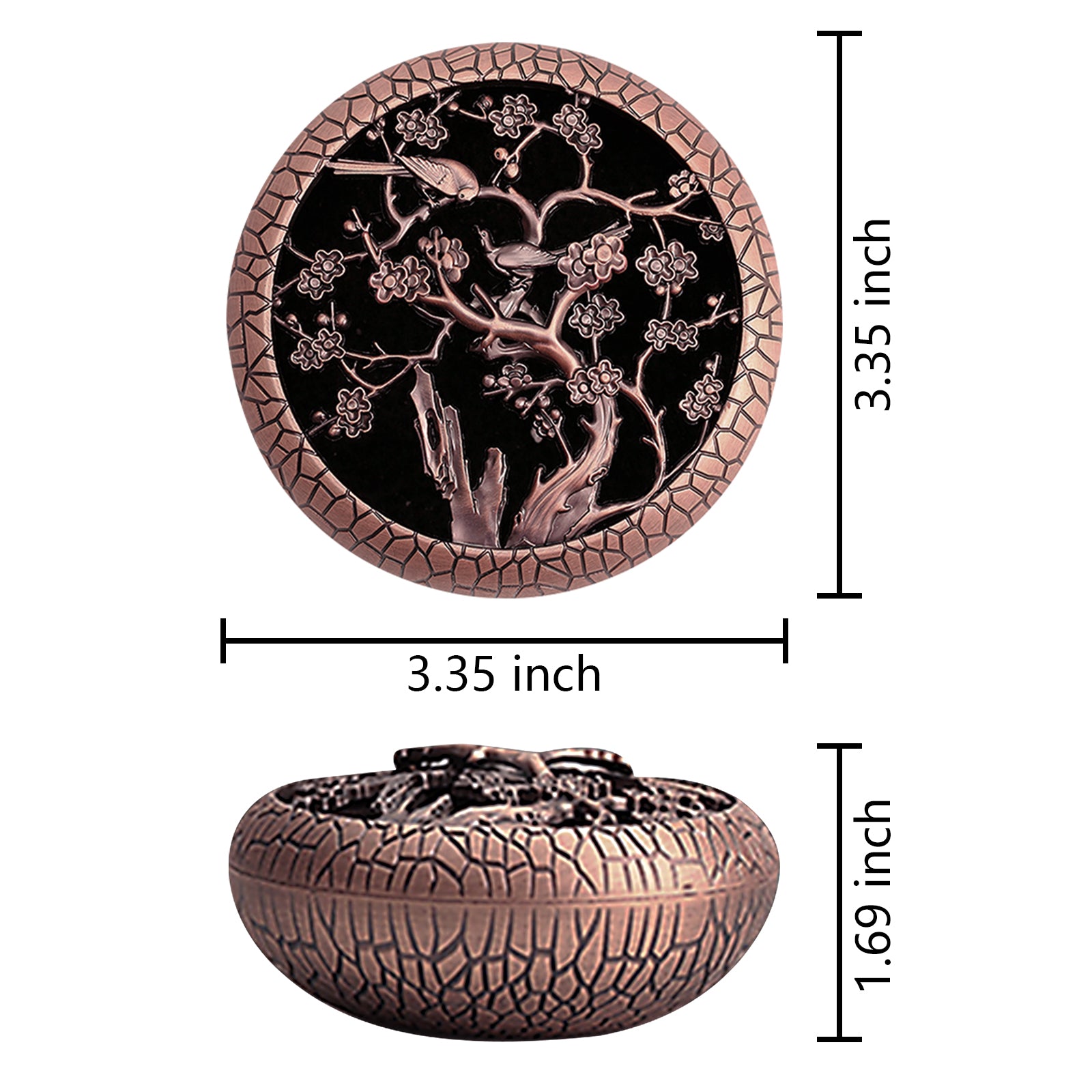 Size: Diameter is 8.5 cm, height is 4.5 cm, and no ashes of normal incenses will be fall over outside the incense burner. Notice: Please notice the size before ordering, The incense holder burner is delicate but not big size.