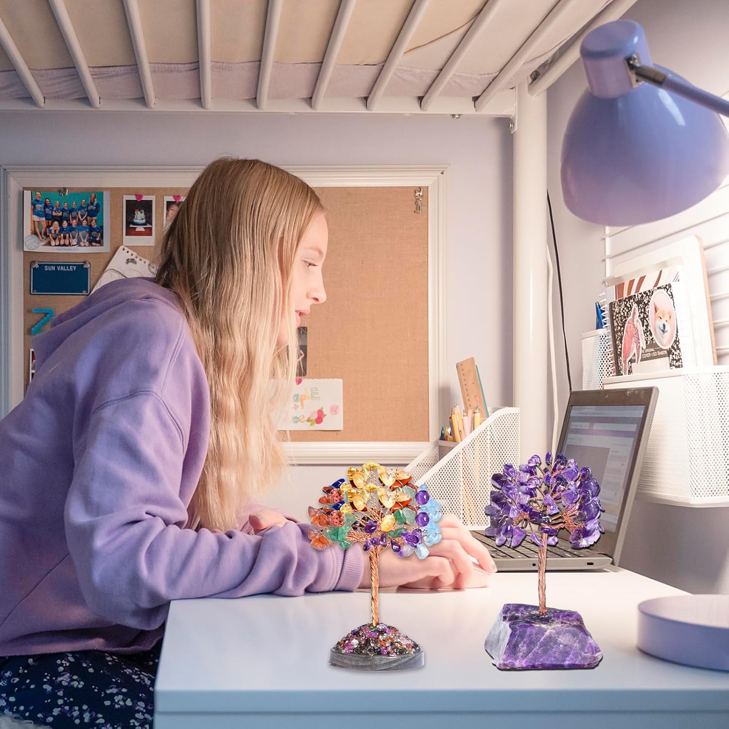 Individually handcrafted using natural amethyst crystals and copper wire, each tree is a unique piece of art, showcasing meticulous craftsmanship and attention to detail.